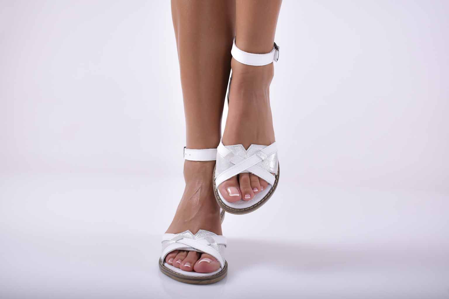 Дамски сандали естествена кожа бели EOBUVKIBG