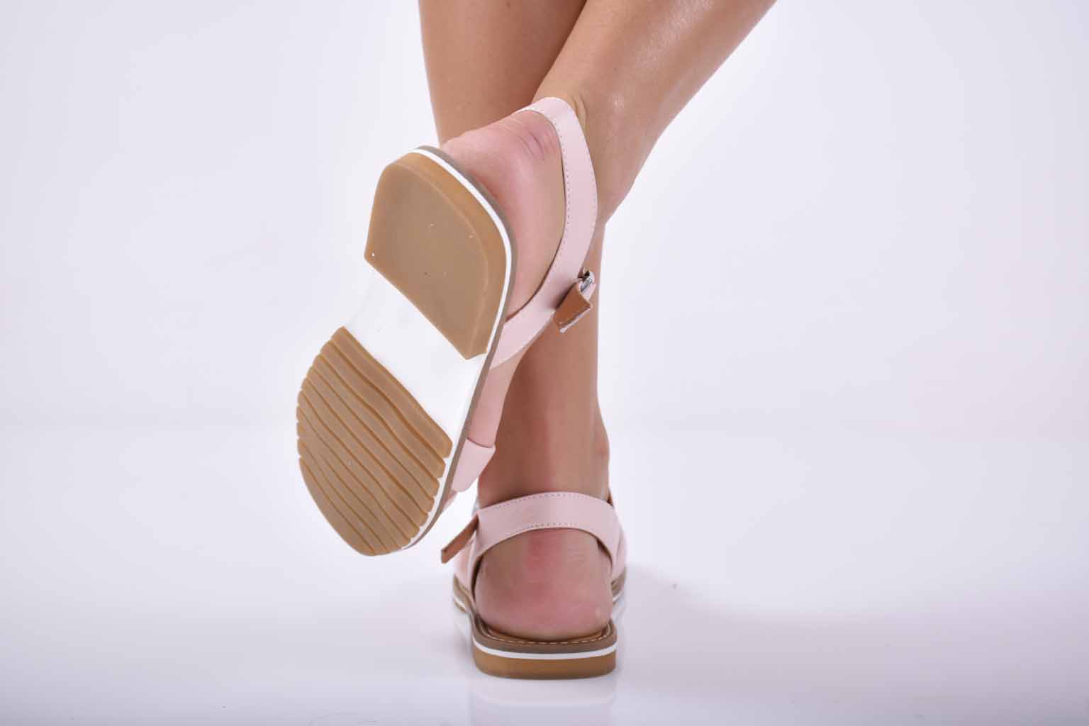 Дамски сандали равни естествена кожа пудра EOBUVKIBG #501-1837