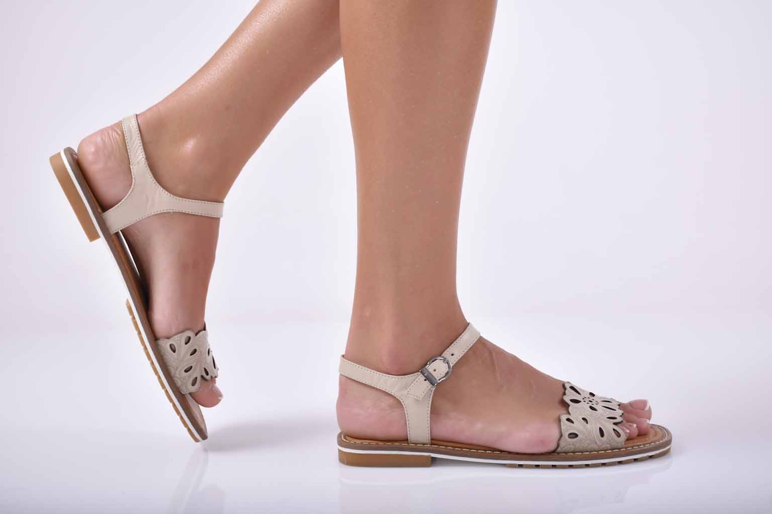 Дамски сандали равни естествена кожа бежов EOBUVKIBG #501-1841