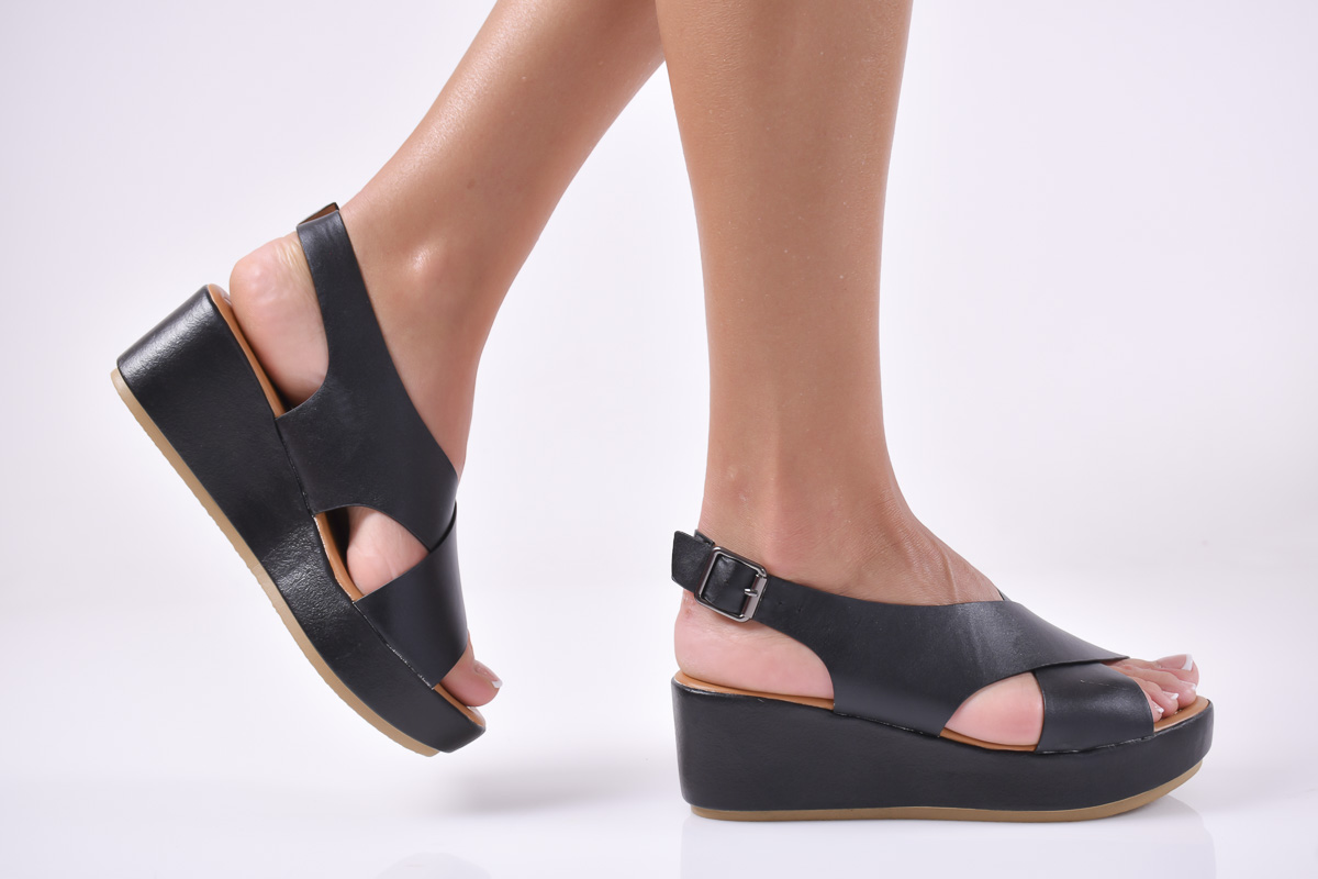 Дамски сандали естествена кожа черни EOBUVKIBG