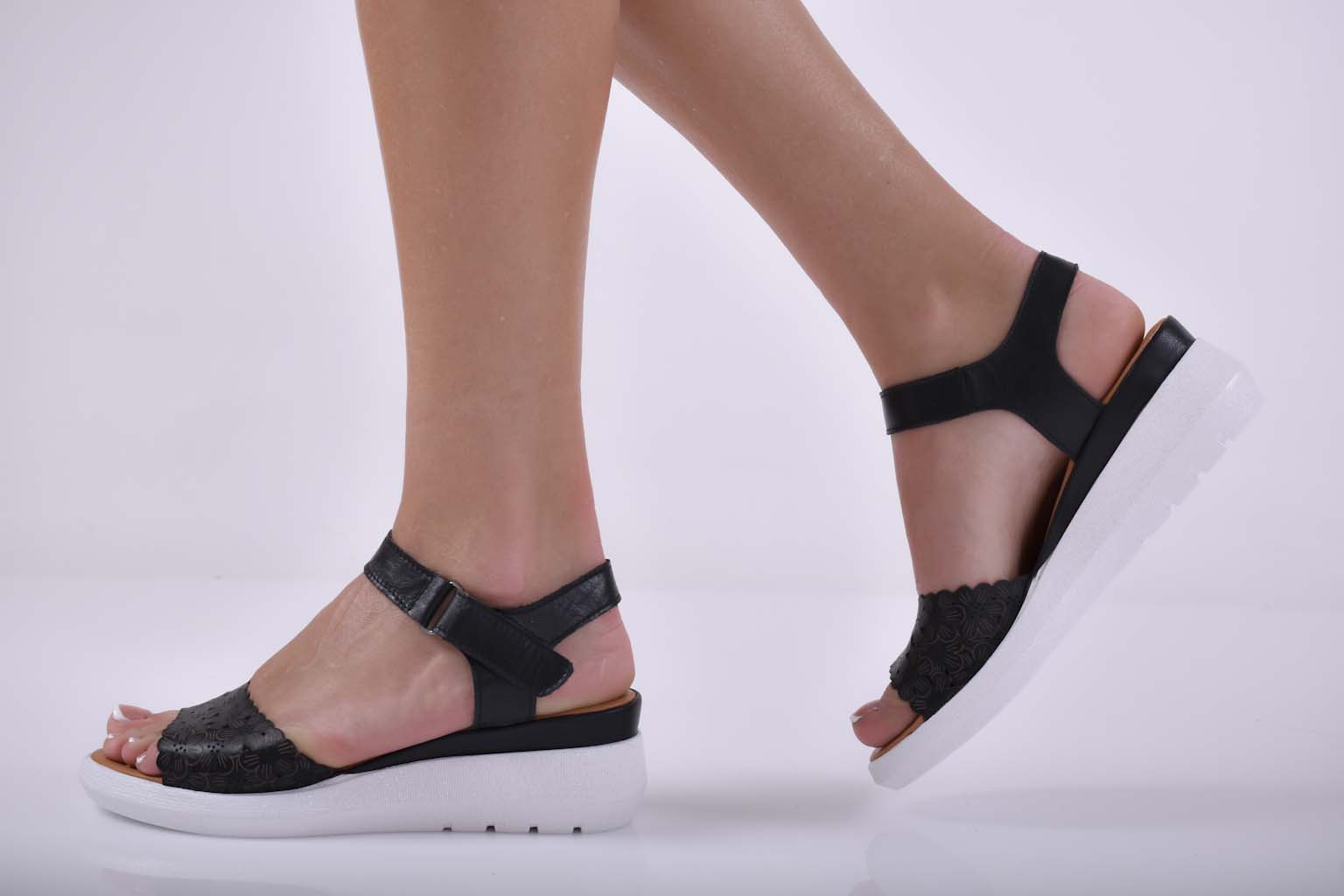 Сандали на платформа естествена кожа черни EOBUVKIBG #501-1340
