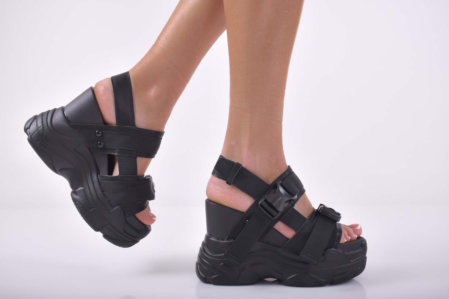 Дамски сандали на платформа черни EOBUVKIBG