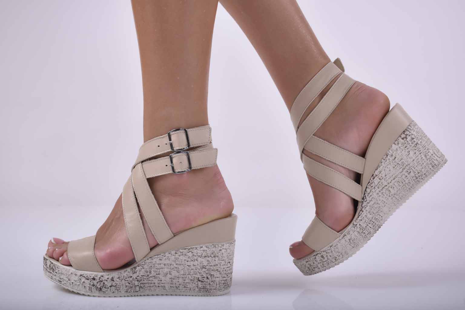 Сандали на платформа естествена кожа бежови EOBUVKIBG #501-1456