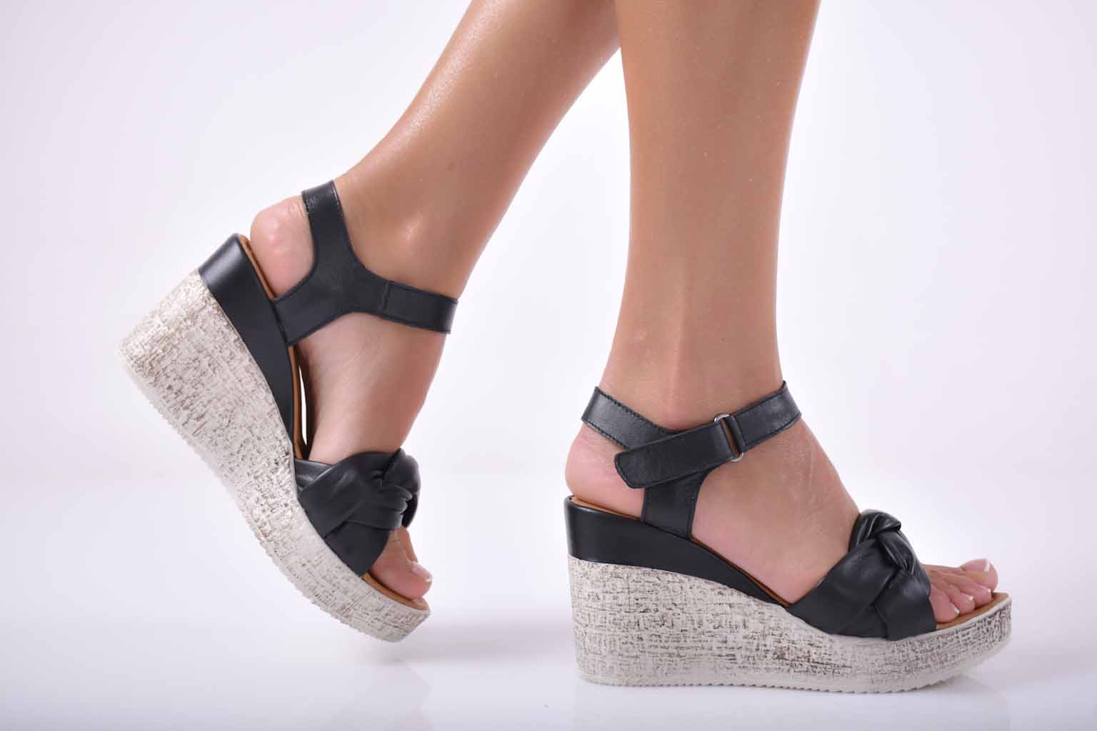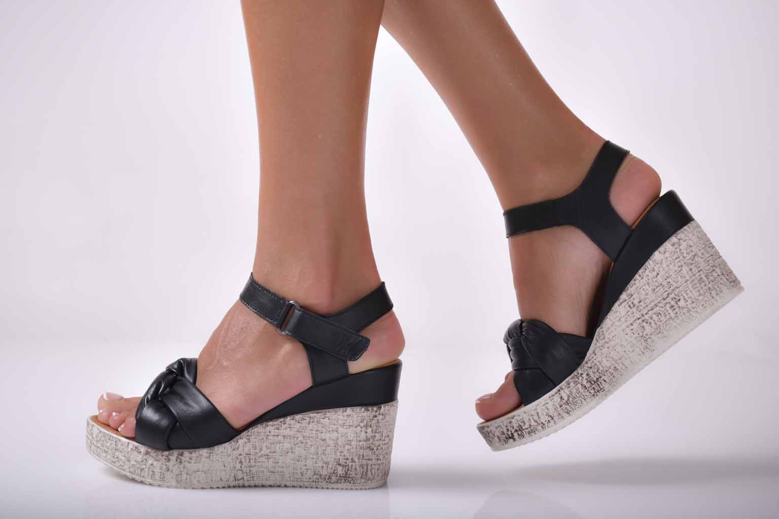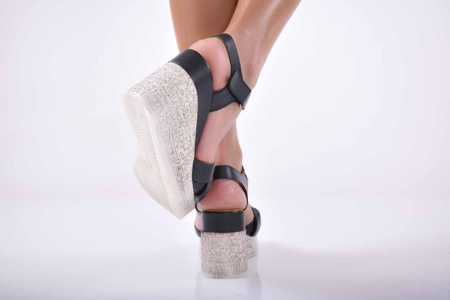 Сандали на платформа естествена кожа черни EOBUVKIBG #501-1694