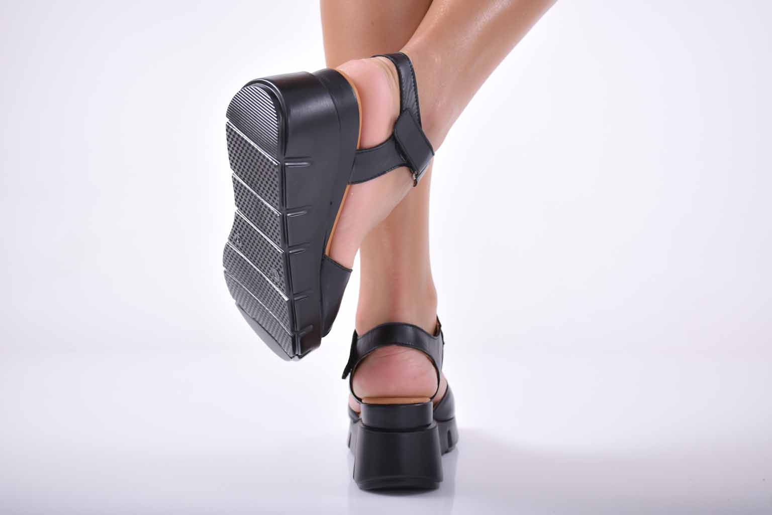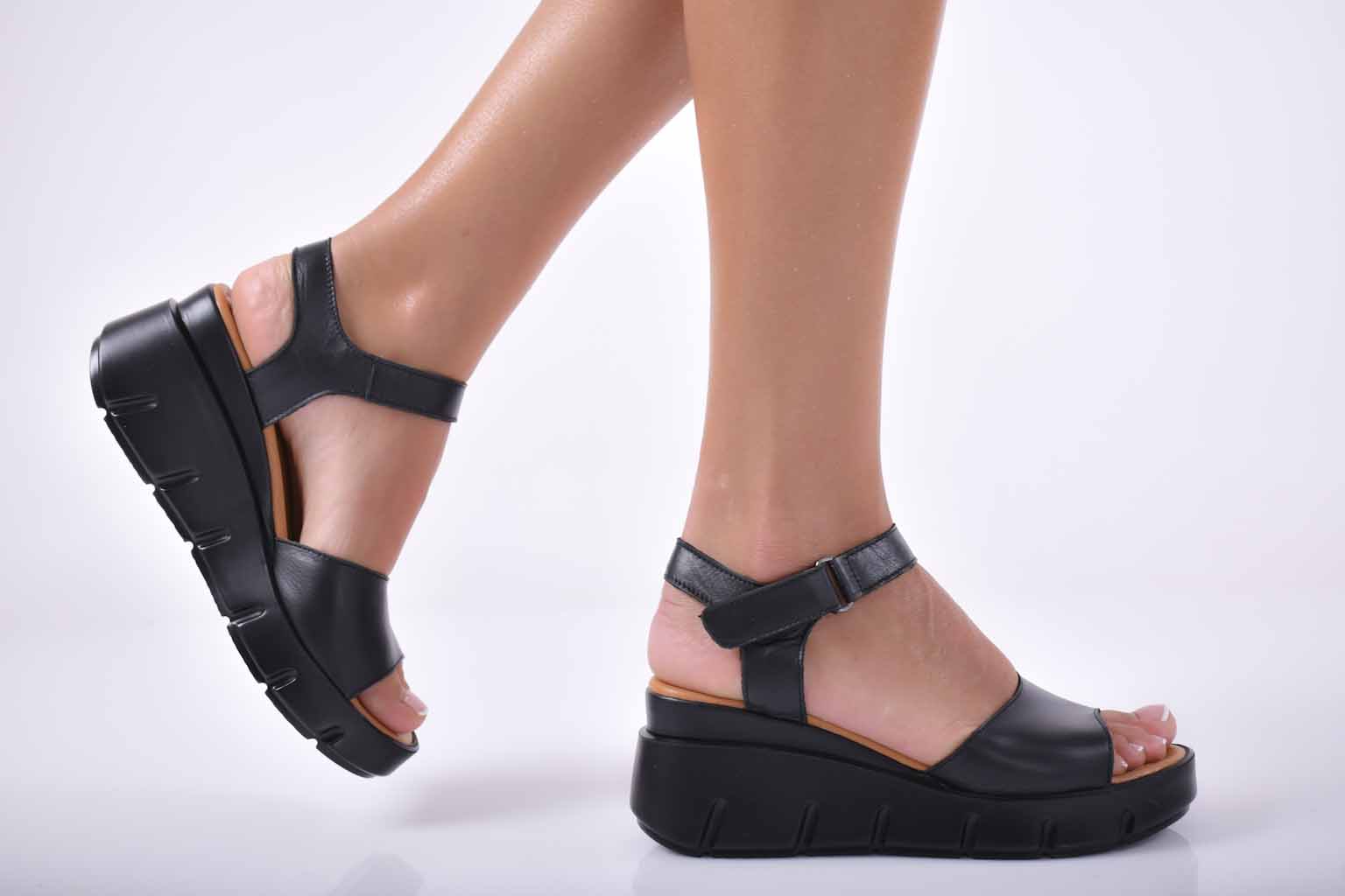 Сандали на платформа естествена кожа черни EOBUVKIBG #501-1698