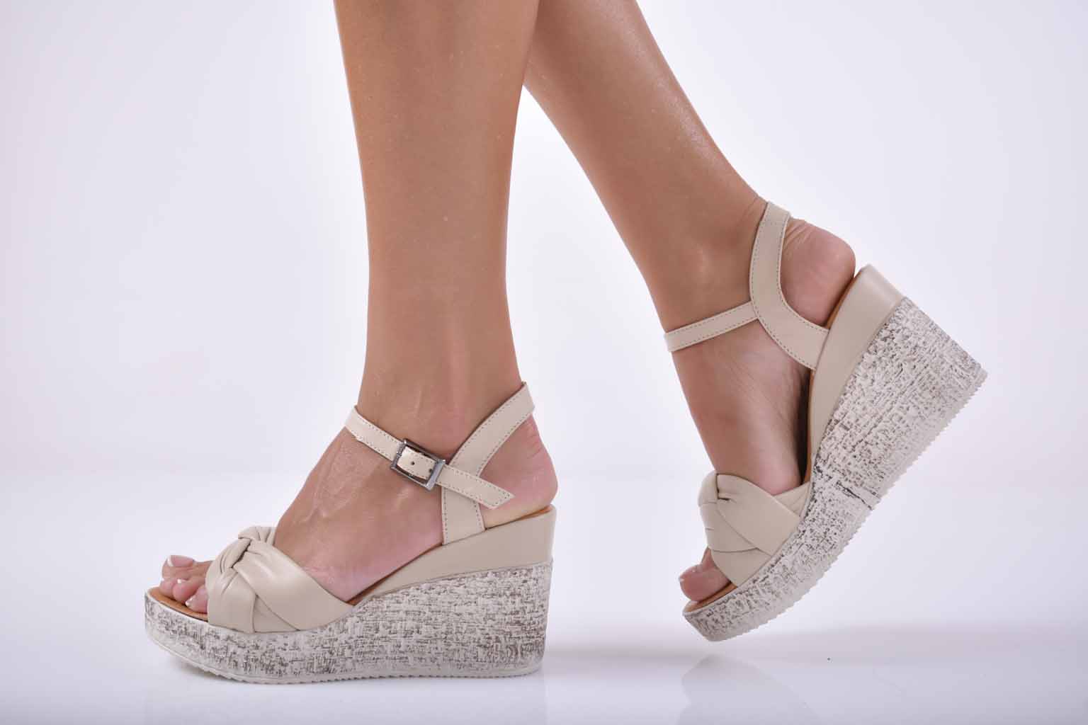 Дамски сандали на платформа естествена кожа бежови EOBUVKIBG #501-1829