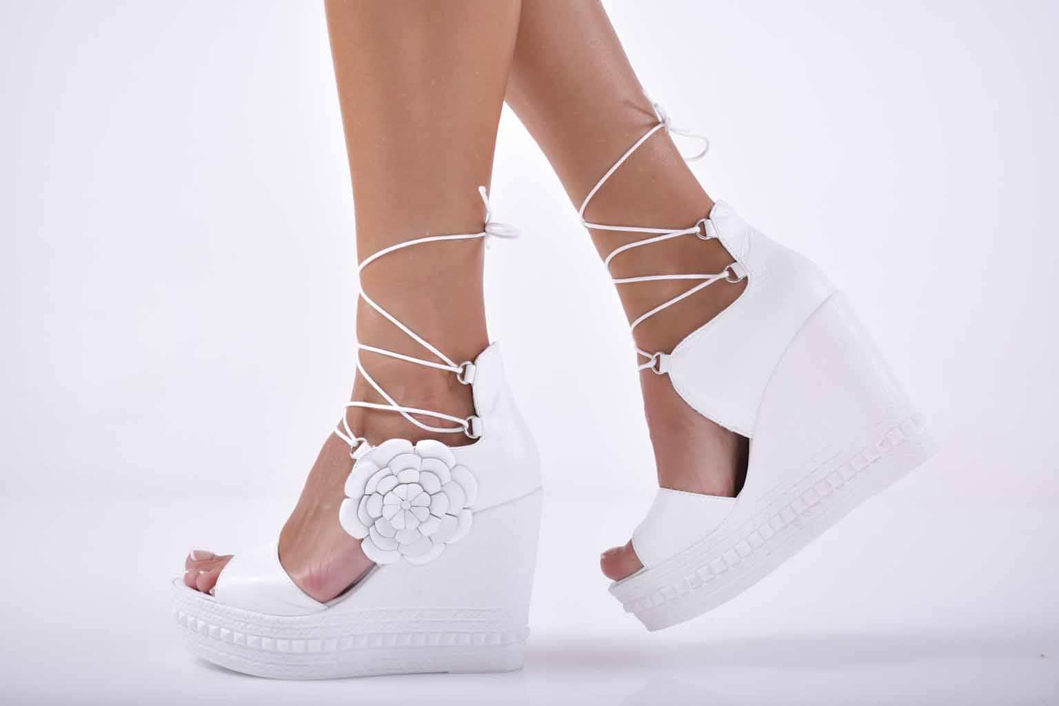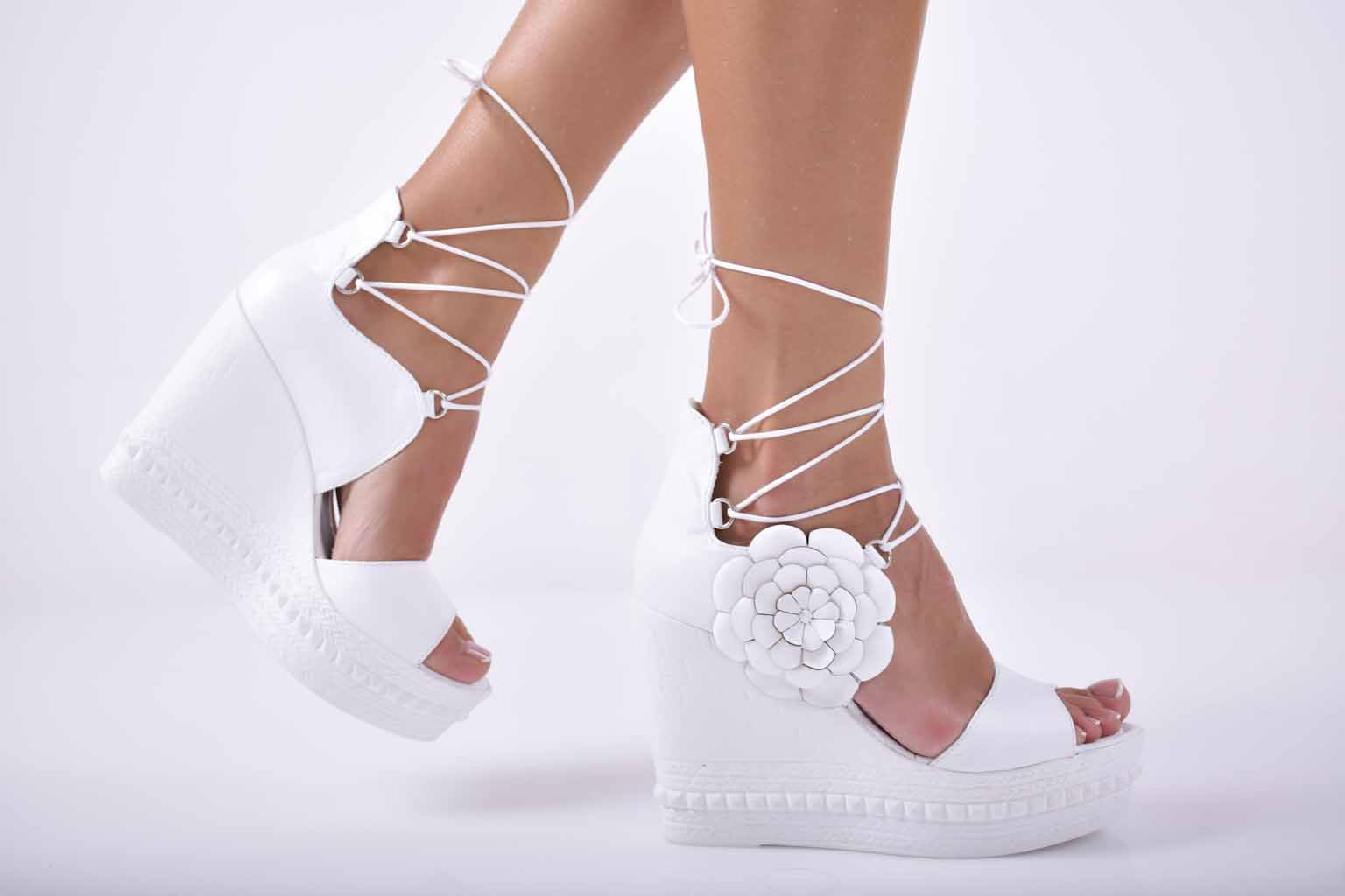 Сандали на платформа естествена кожа бели EOBUVKIBG #501-1820