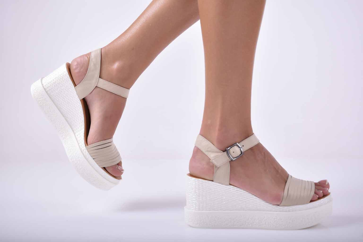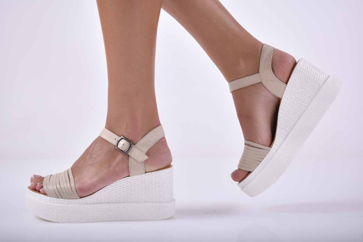 Дамски сандали естествена кожа бежови EOBUVKIBG