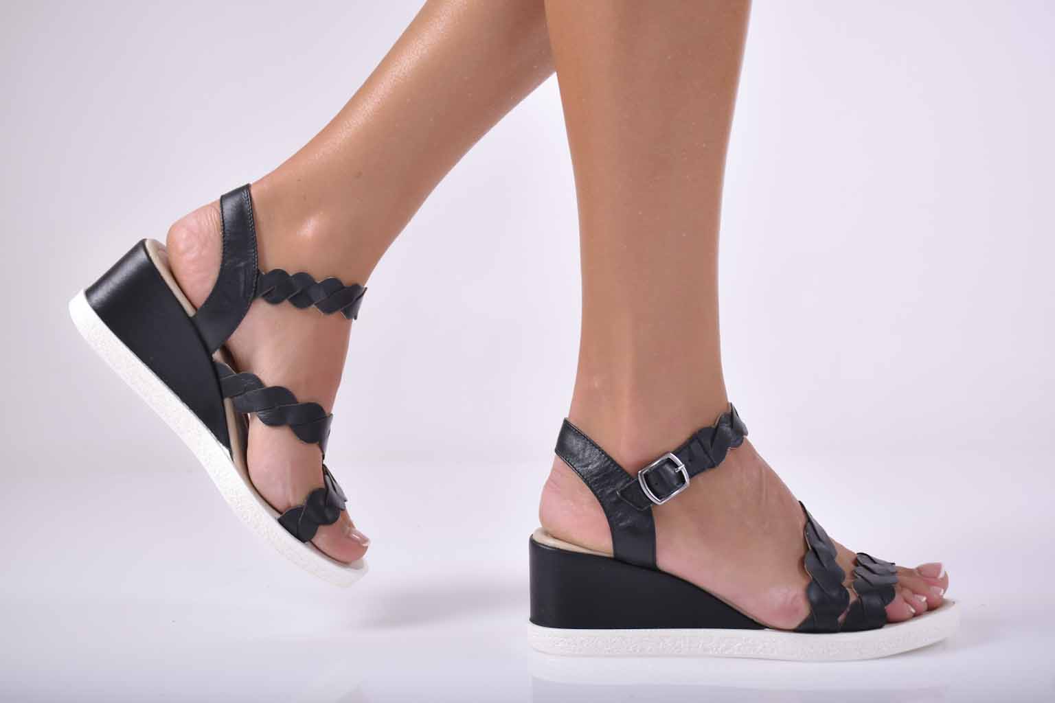 Дамски сандали на платформа естествена кожа черни EOBUVKIBG #501-1914