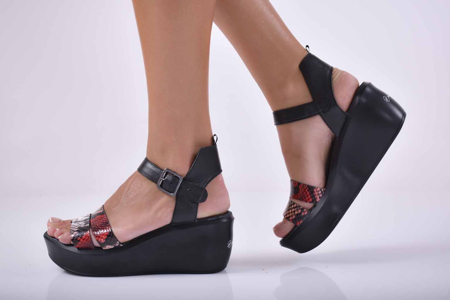 Дамски сандали на платформа естествена кожа черни EOBUVKIBG #501-1918
