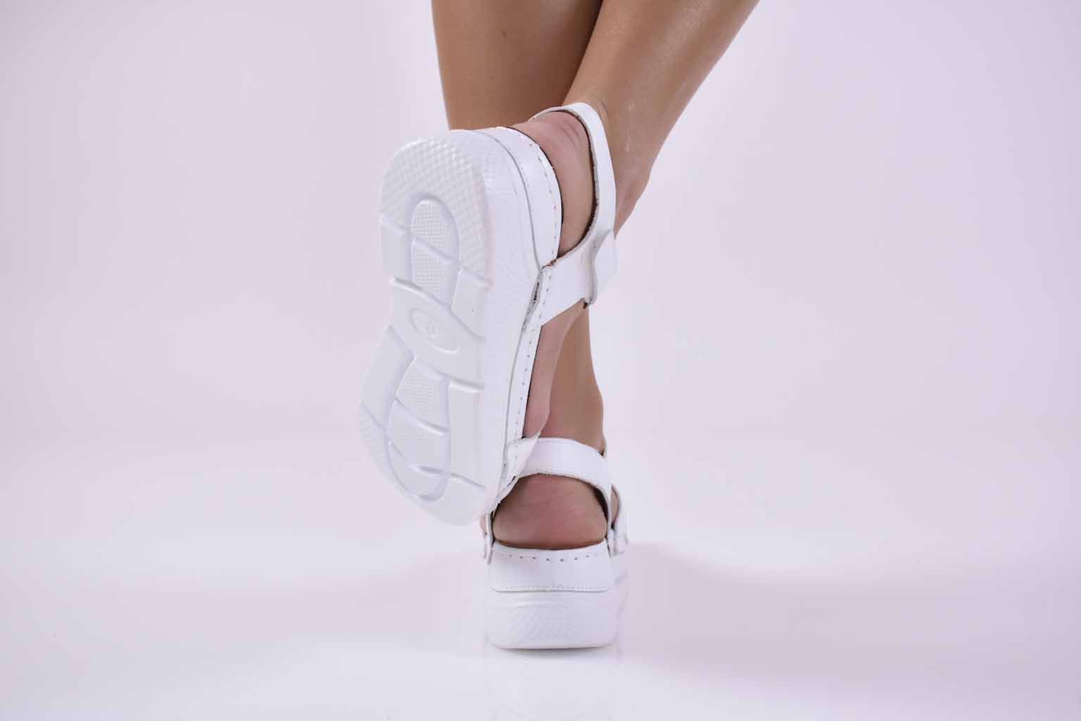 Дамски сандали на платформа естественна кожа с анатомична извивка бел #501-3665