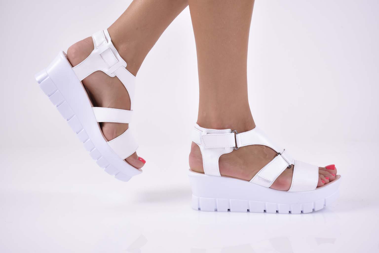 Дамски сандали естествена кожа бели EOBUVKIBG
