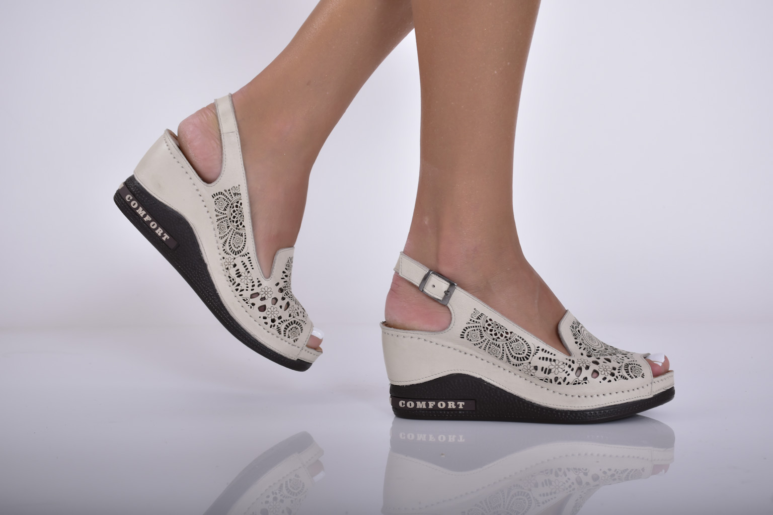 Сандали на платформа естествена кожа бели EOBUVKIBG