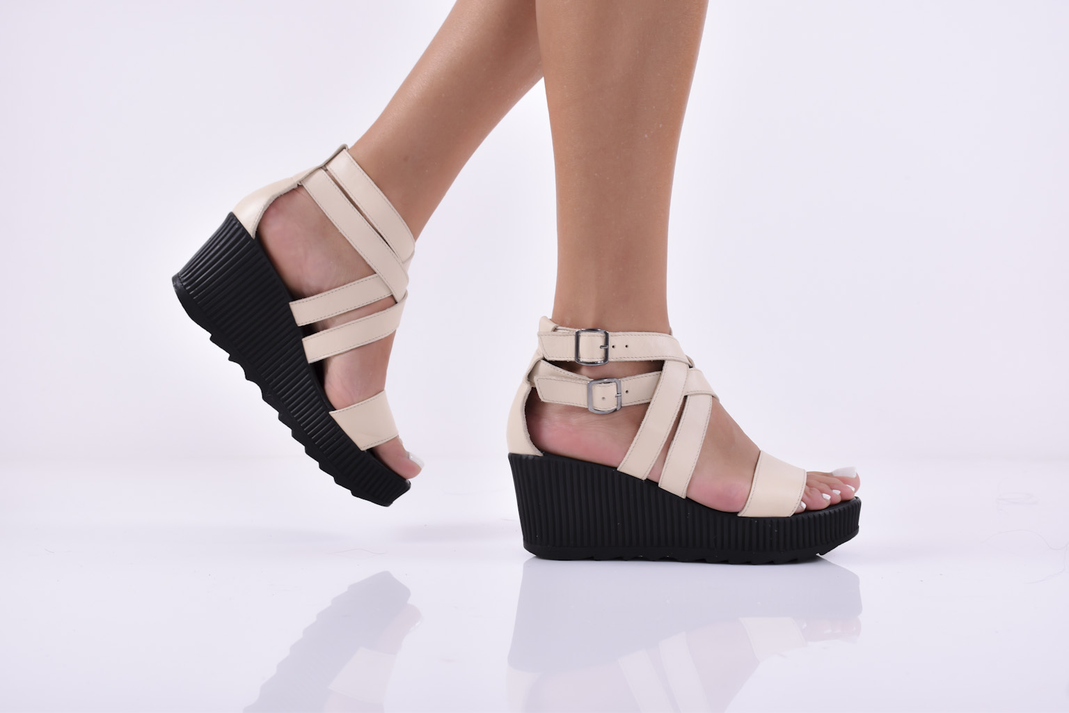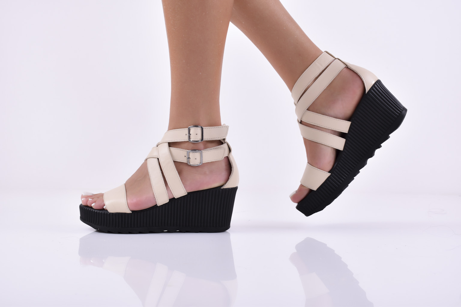 Сандали на платформа естествена кожа бежови EOBUVKIBG