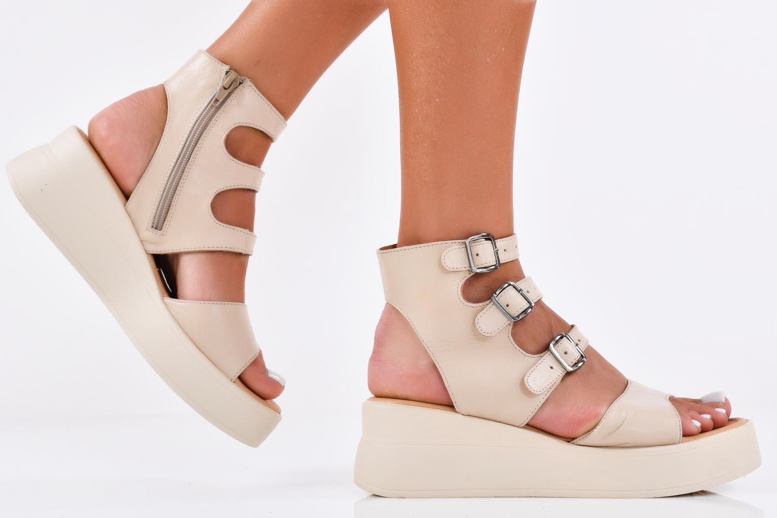 Дамски сандали естествена кожа бежови EOBUVKIBG #502-6686