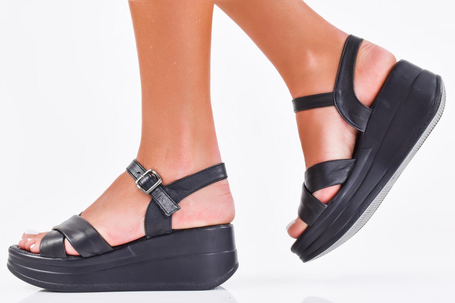 Дамски сандали естествена кожа черни EOBUVKIBG