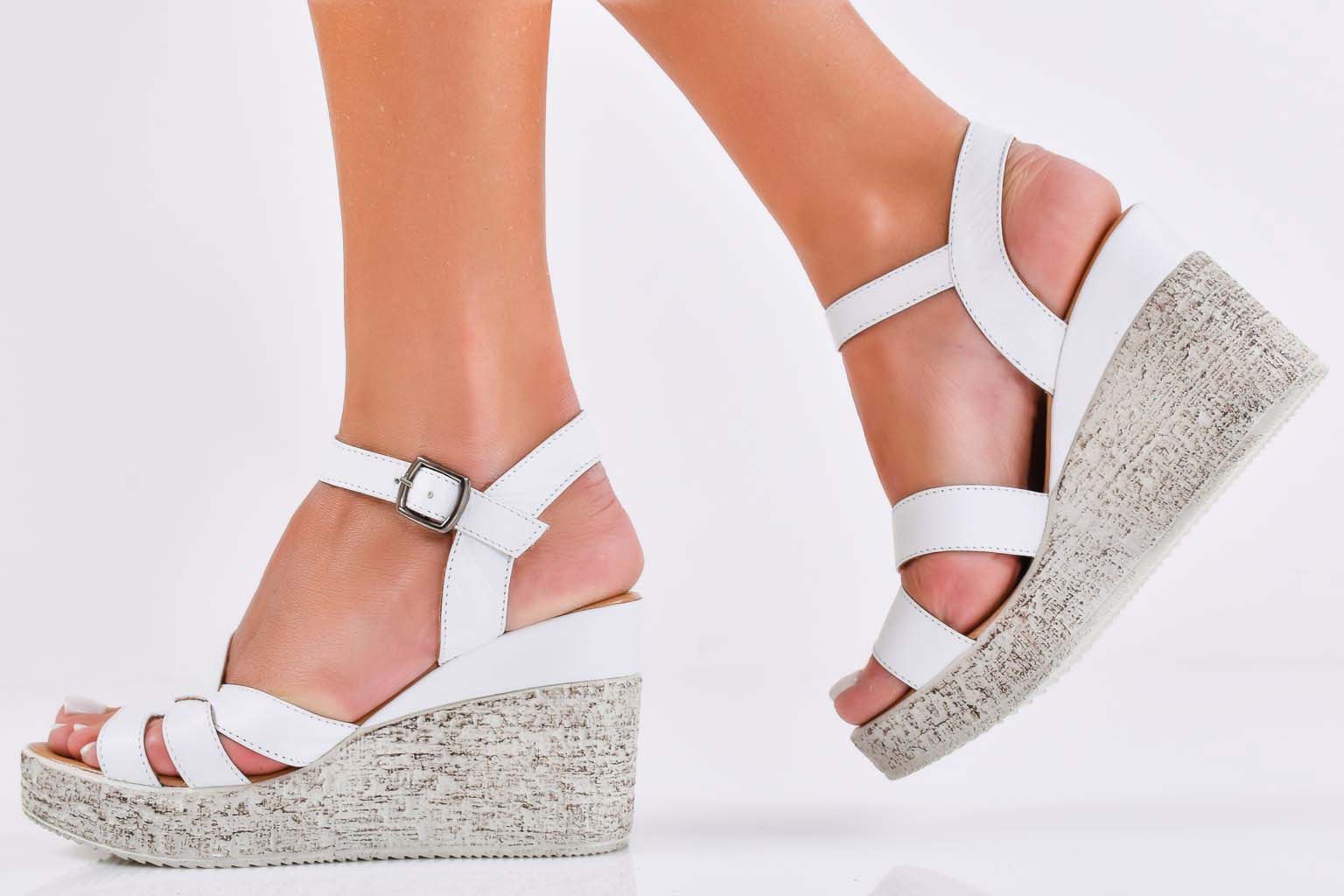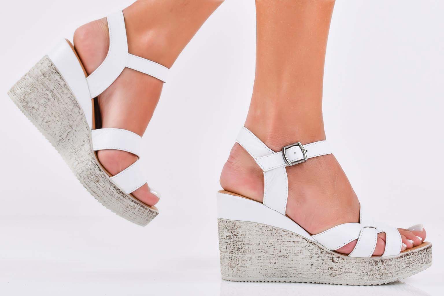 Дамски сандали естествена кожа бели EOBUVKIBG