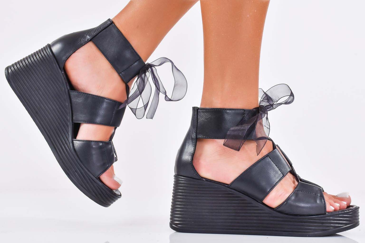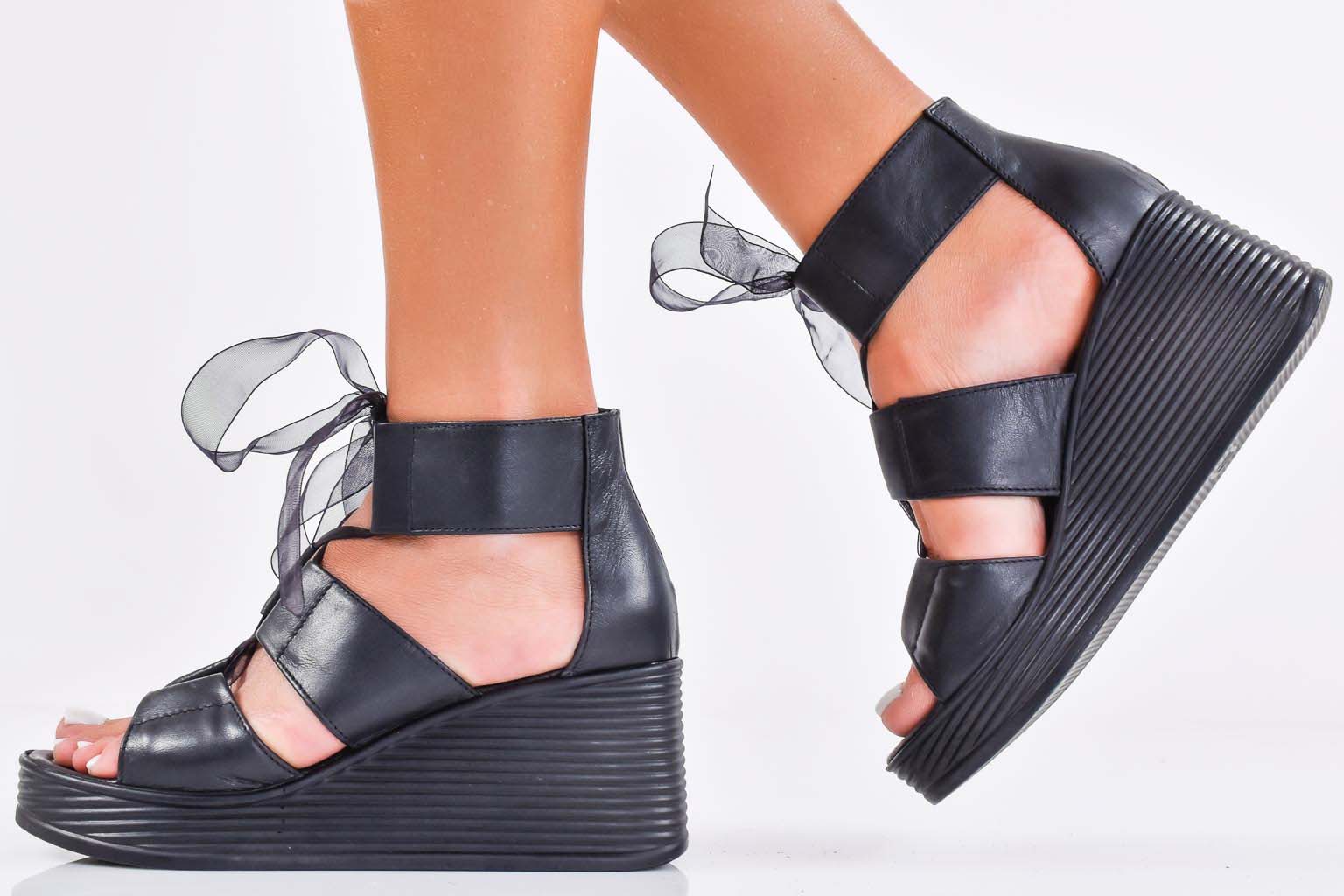 Дамски сандали естествена кожа черни EOBUVKIBG