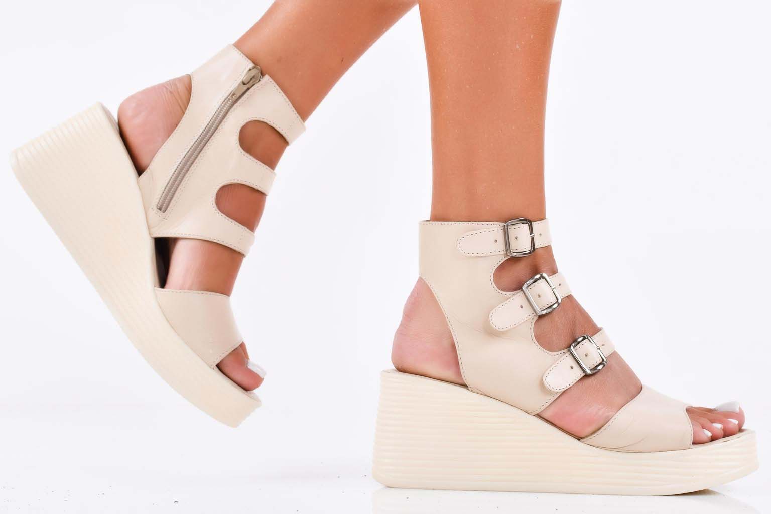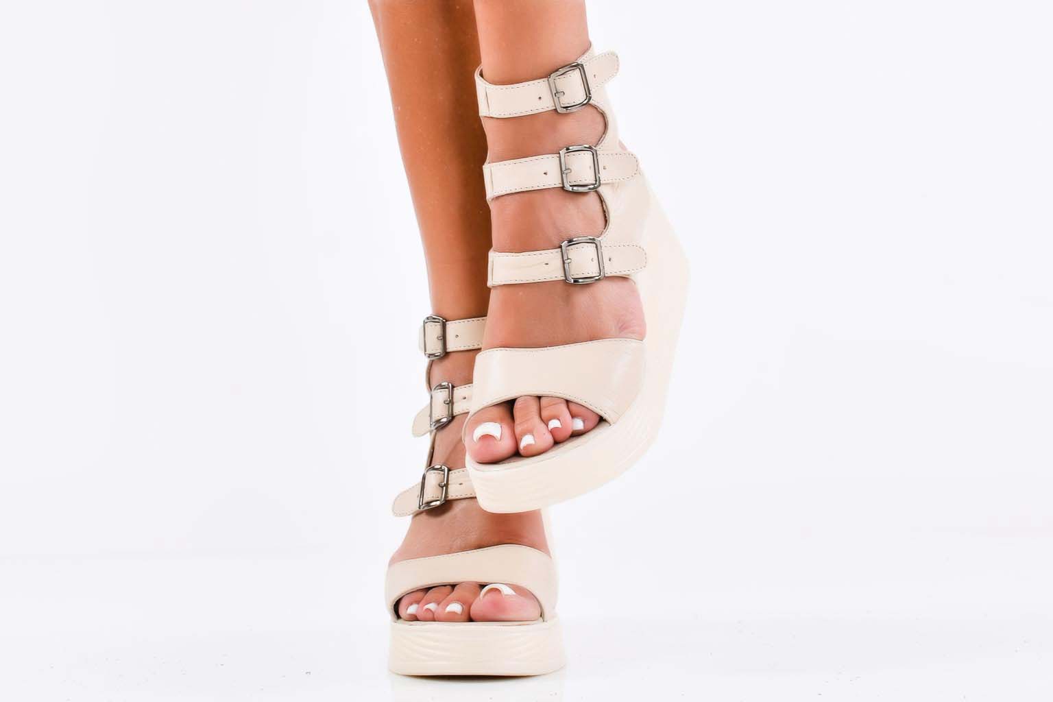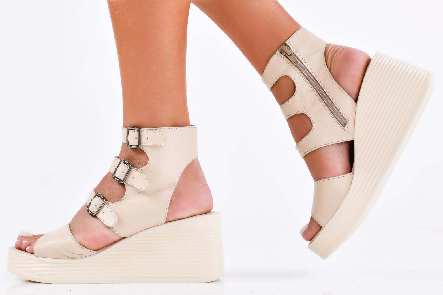 Дамски сандали естествена кожа бежови EOBUVKIBG #502-6791