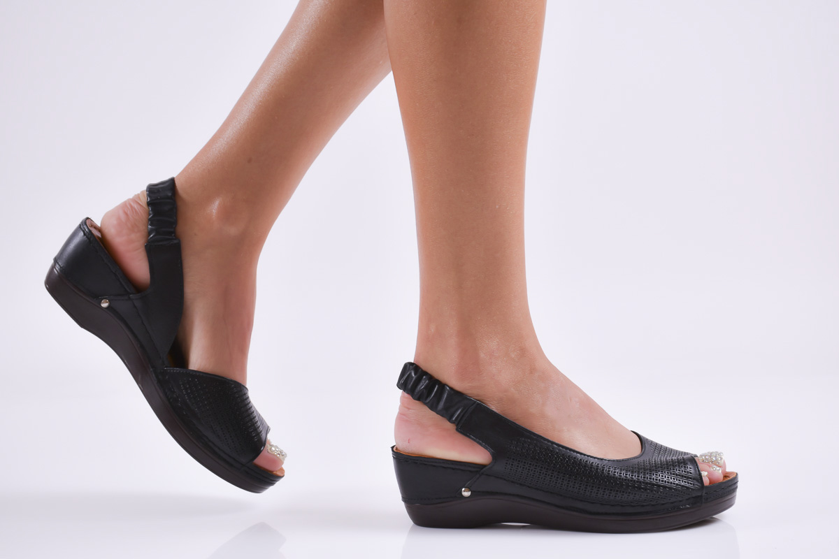Дамски сандали естествена кожа черни EOBUVKIBG