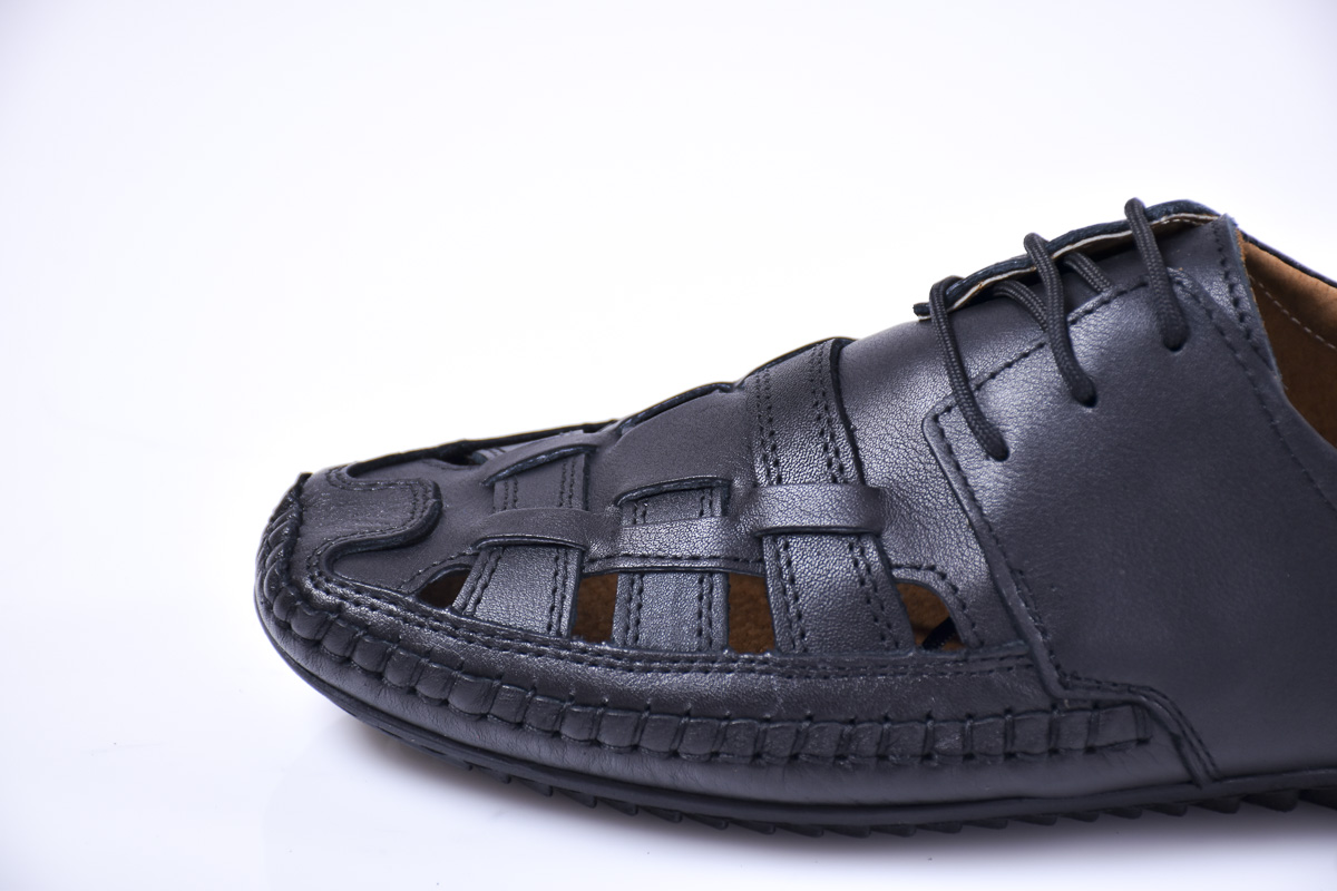 Мъжки сандали естествена кожа черни EOBUVKIBG