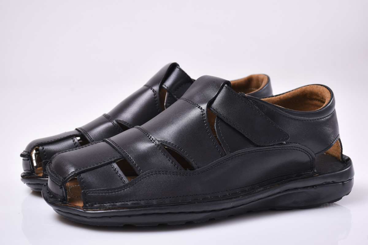 Мъжки сандали естествена кожа черни EOBUVKIBG