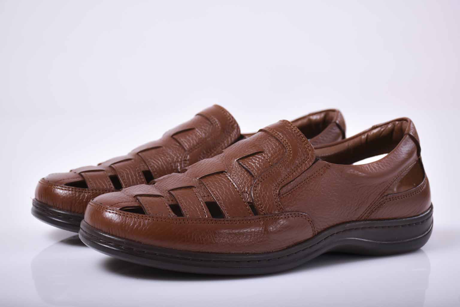 Мъжки чехли естествена кожа кафяви EOBUVKIBG