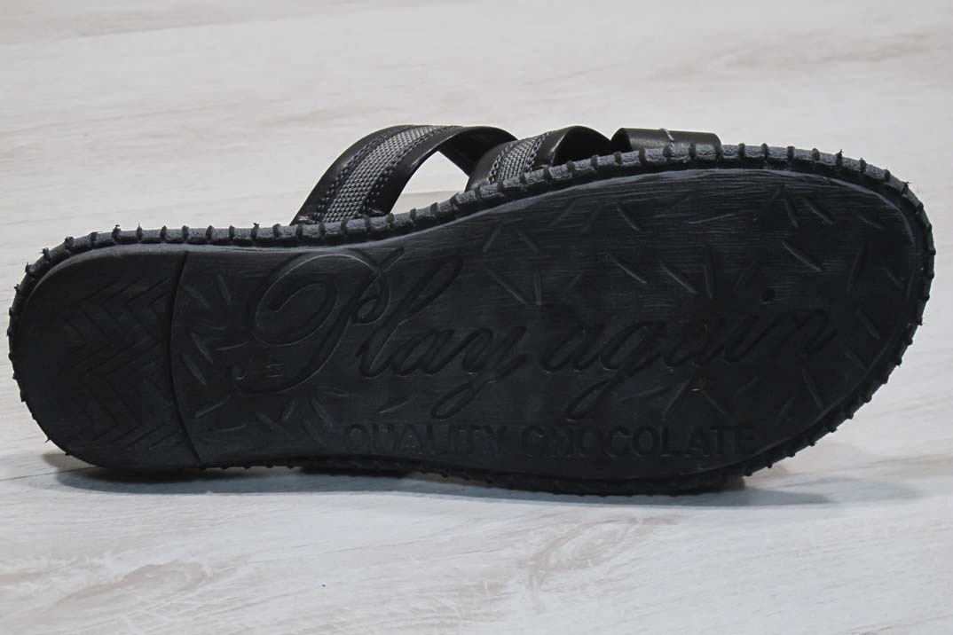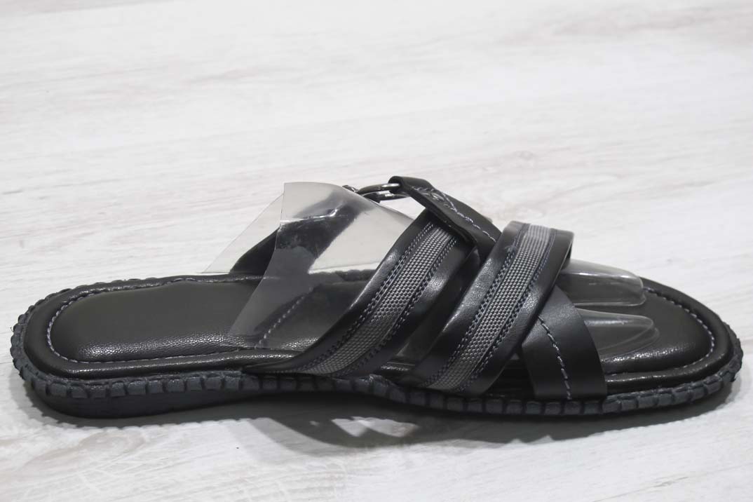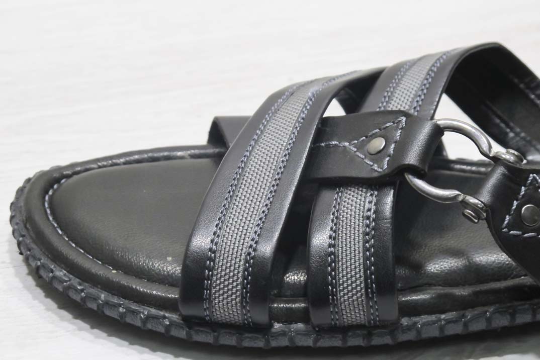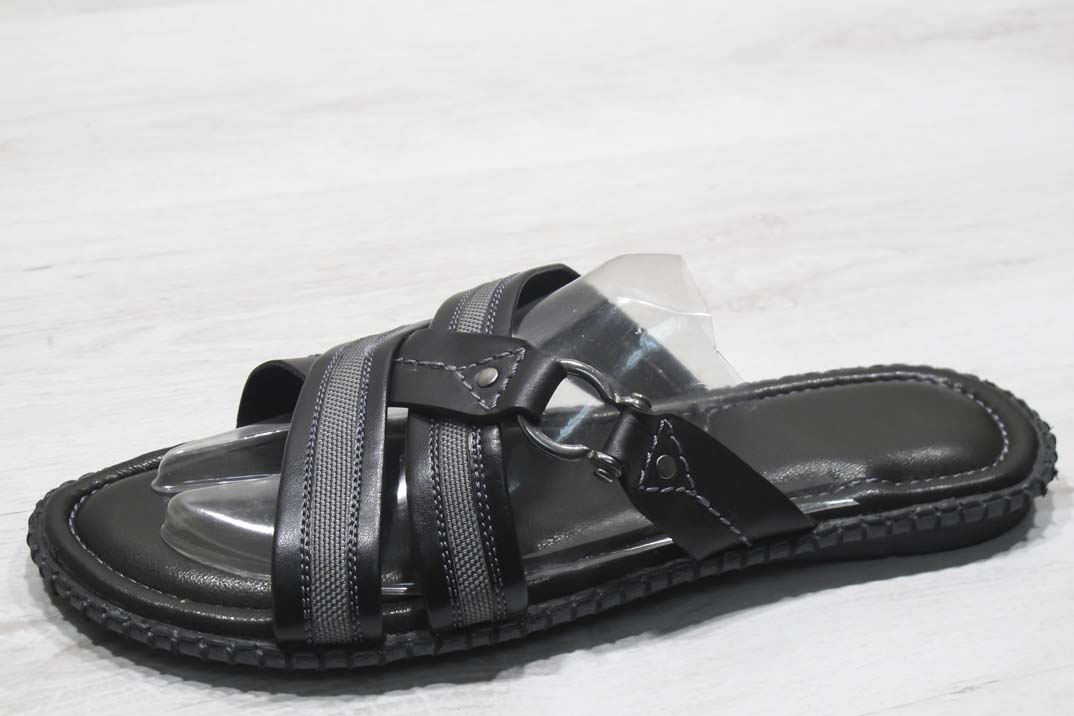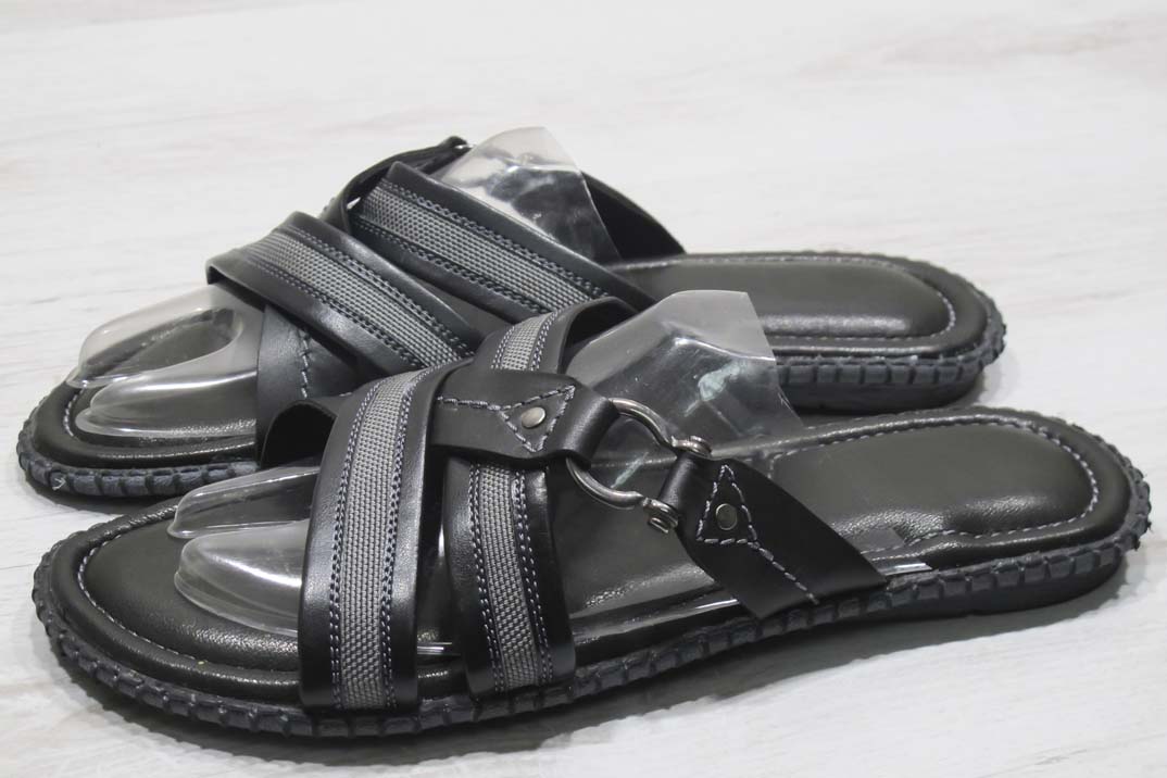 Мъжки чехли естествена кожа черно сиви #169-7910
