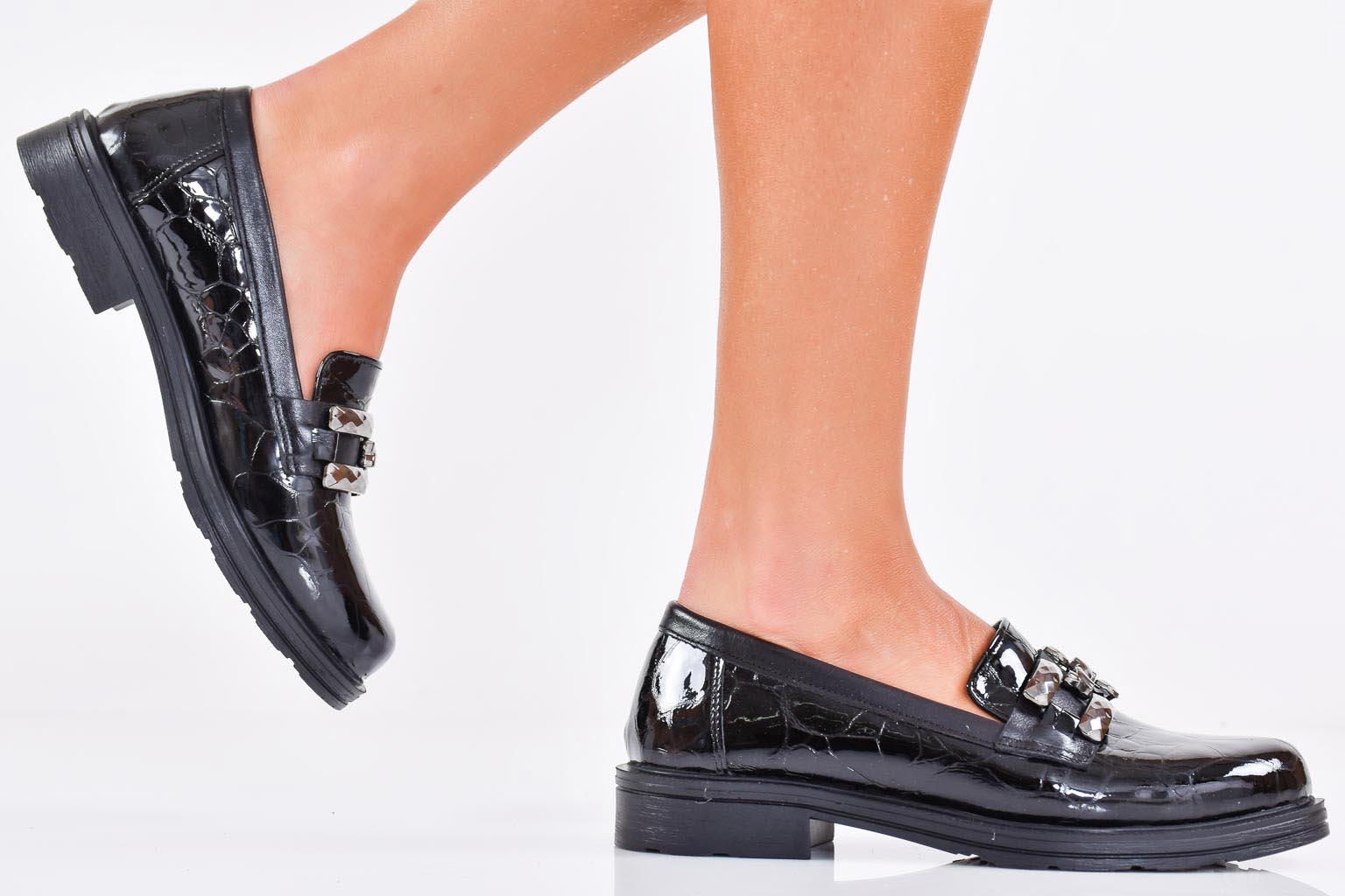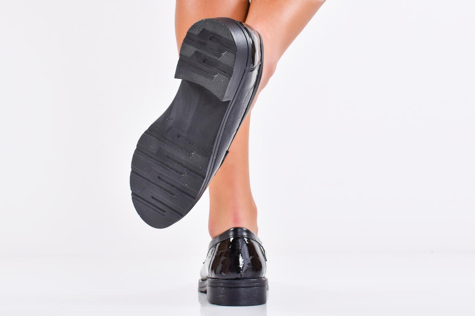 Дамски лоуфъри естествен лак черни EOBUVKIBG