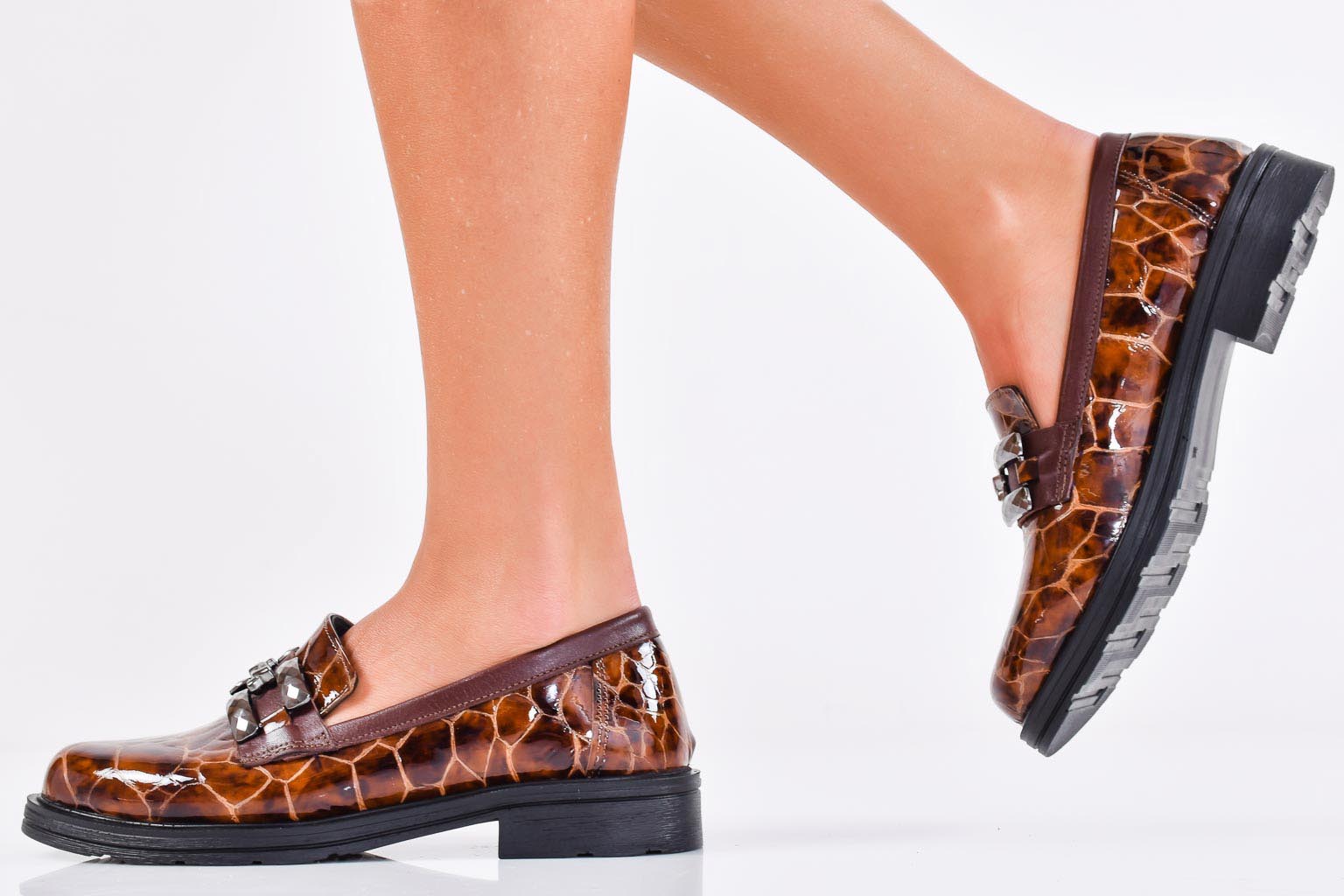 Дамски обувки естествен лак кафеви EOBUVKIBG #502-6835
