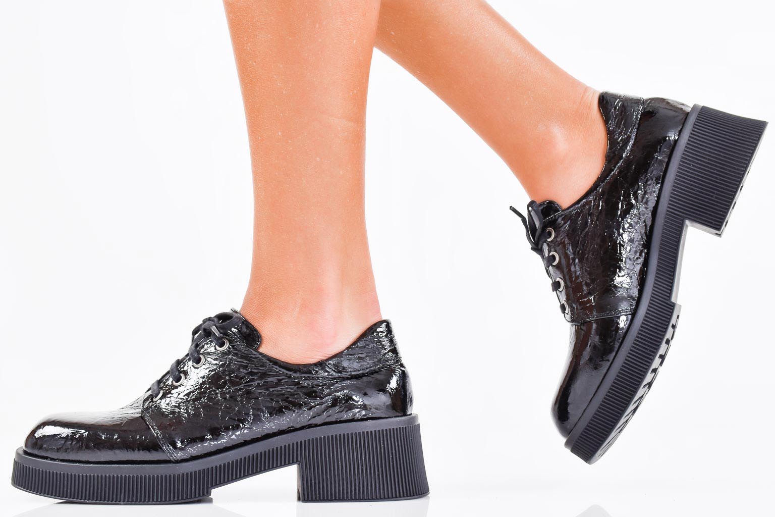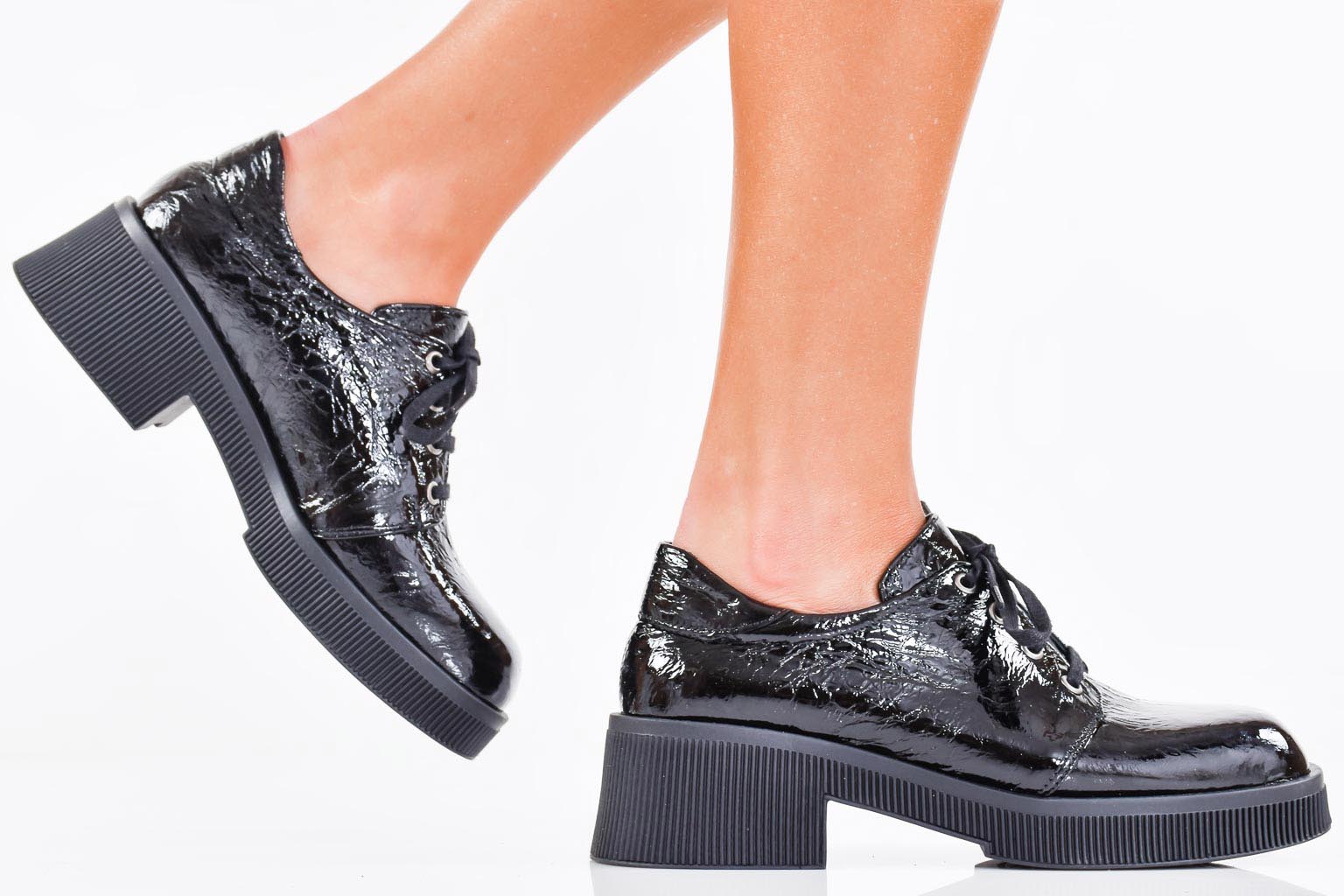 Дамски лоуфъри естествен лак черни EOBUVKIBG