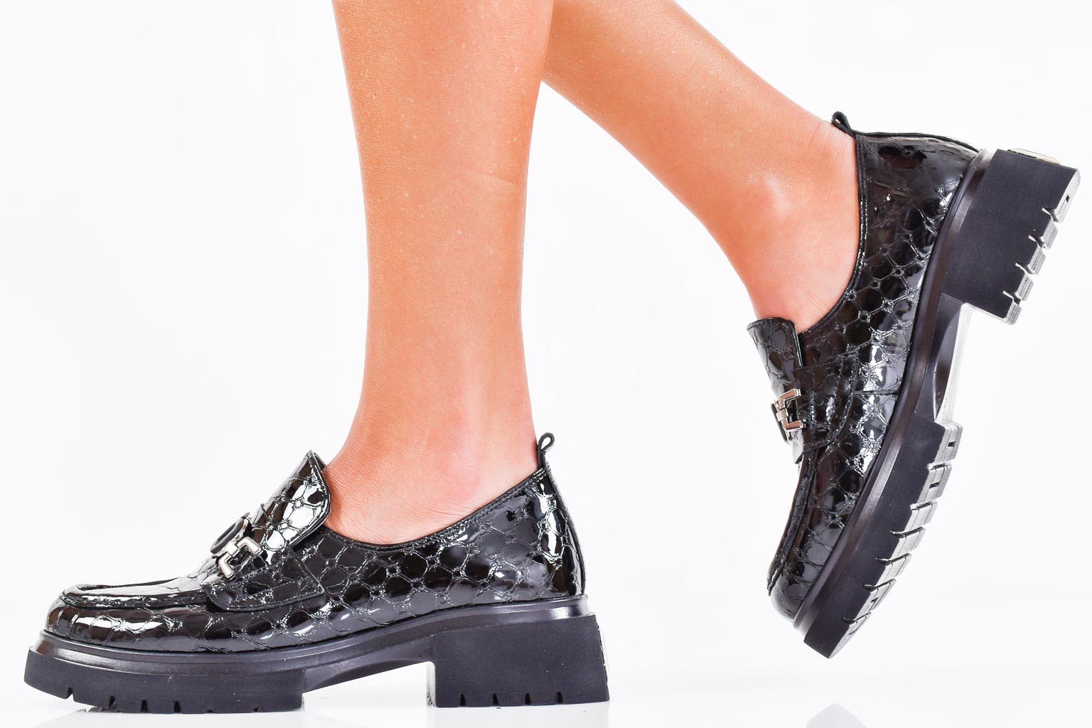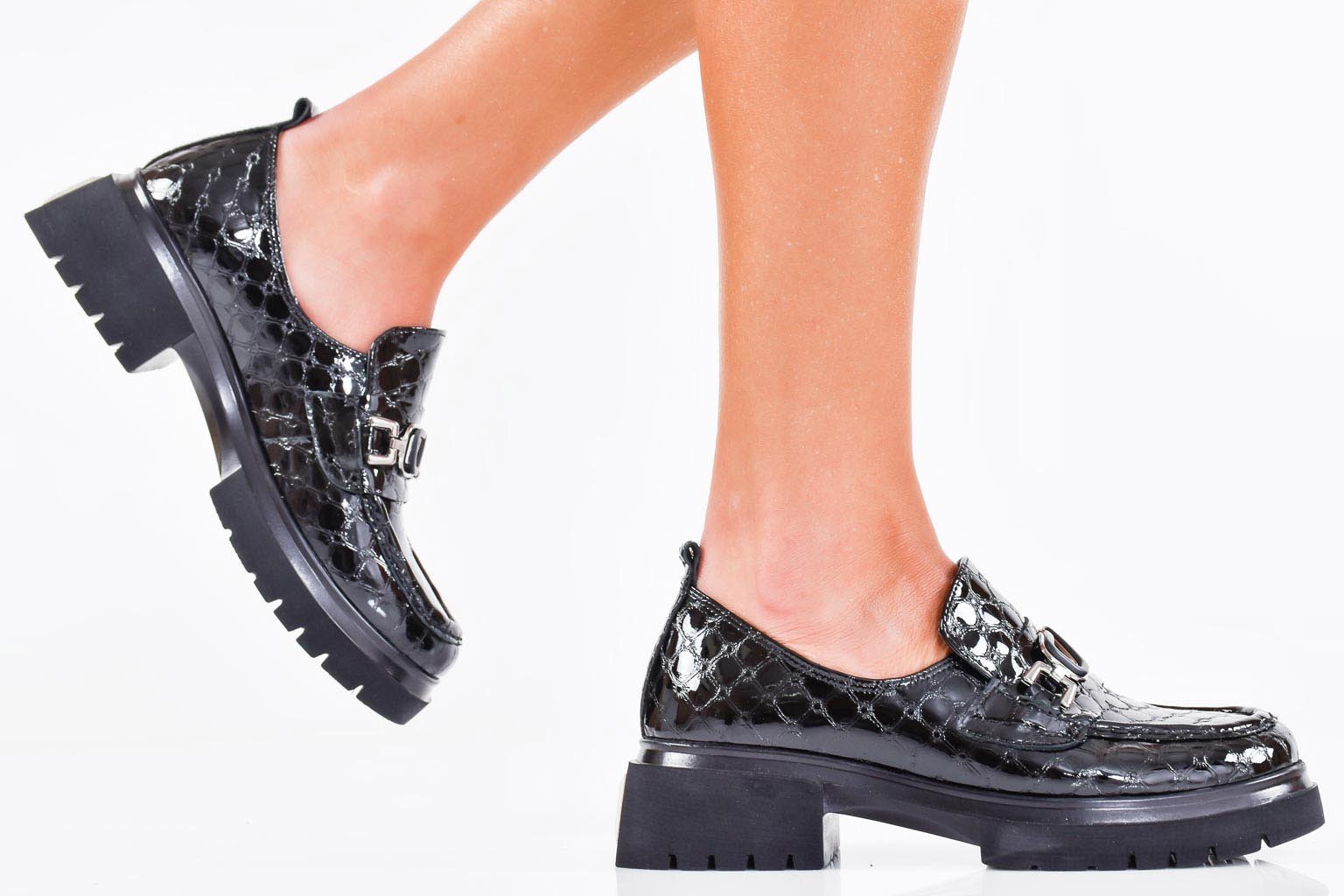 Дамски лоуфъри естествен лак черни EOBUVKIBG