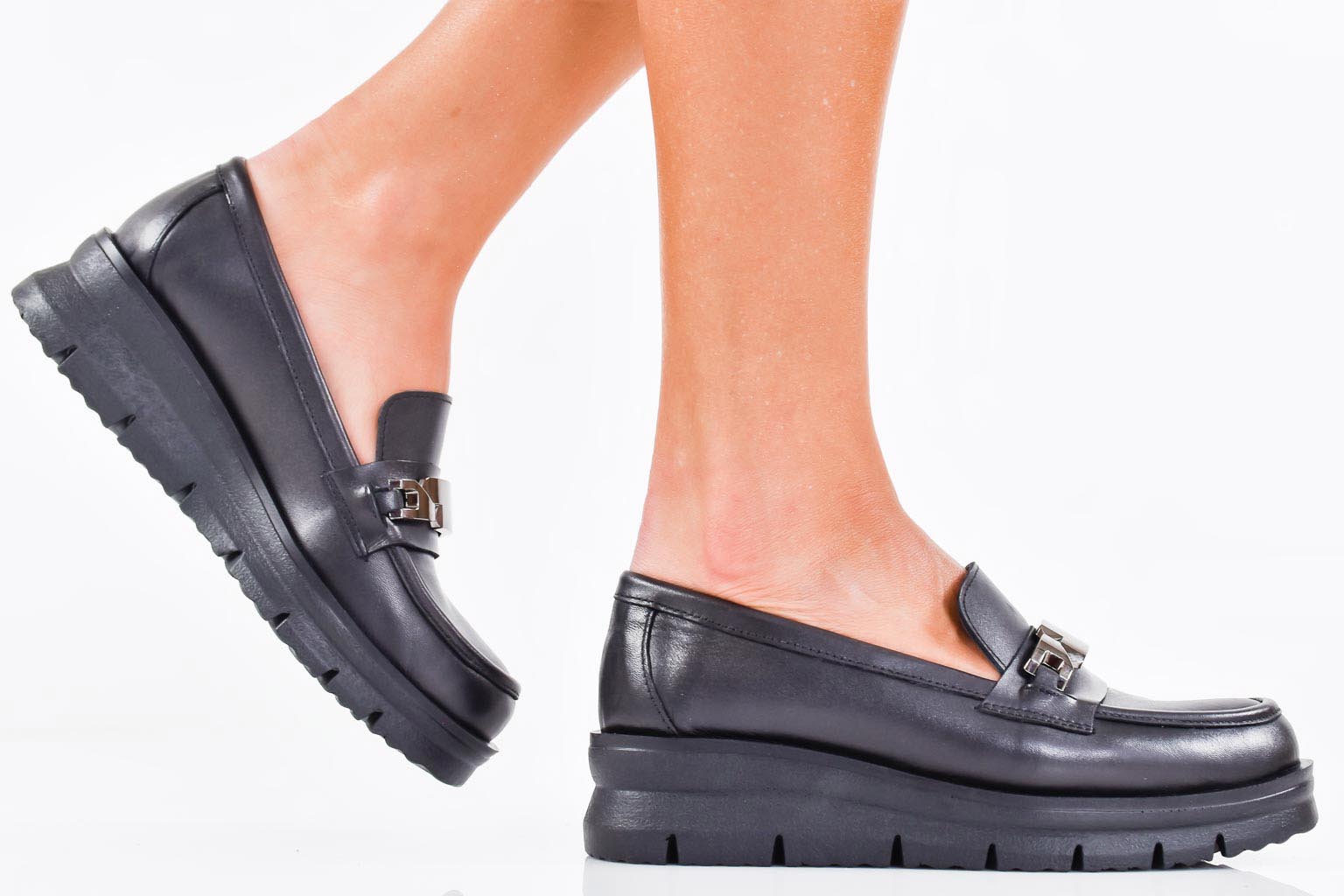 Дамски лоуфъри естествена кожа черни EOBUVKIBG