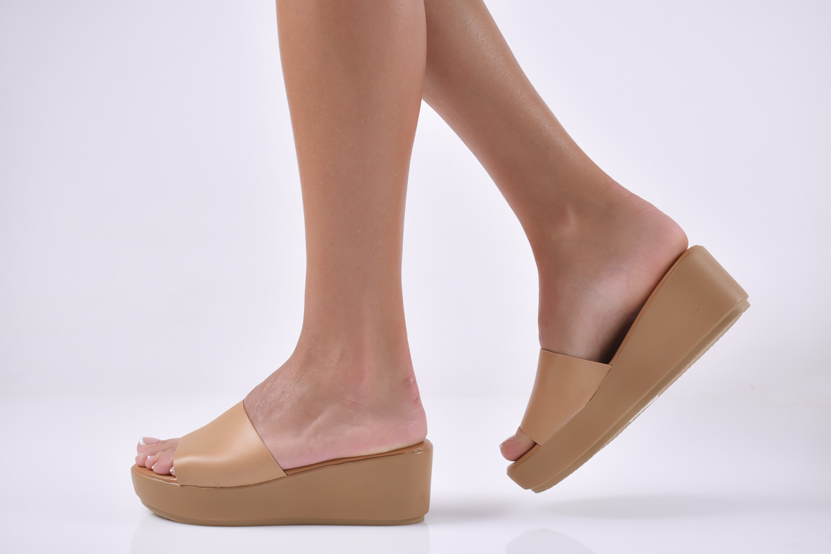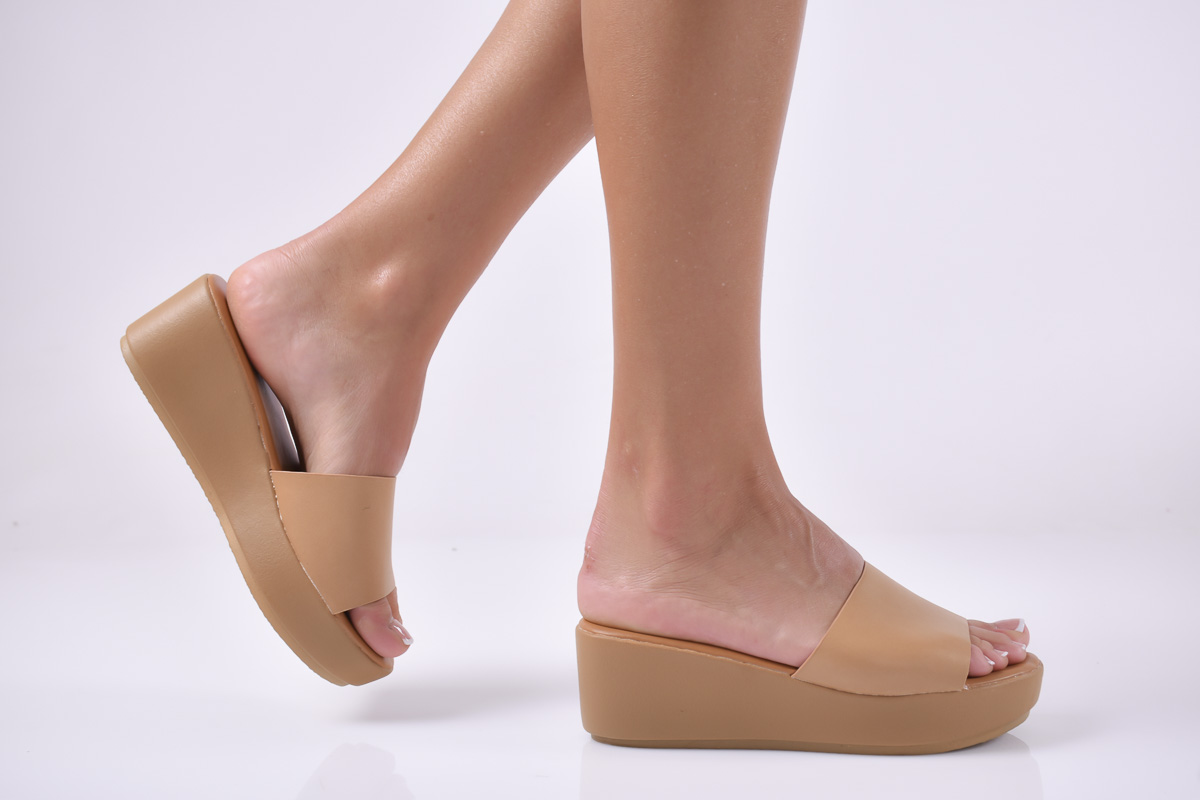 Дамски чехли на платформа бежови EOBUVKIBG #501-0138
