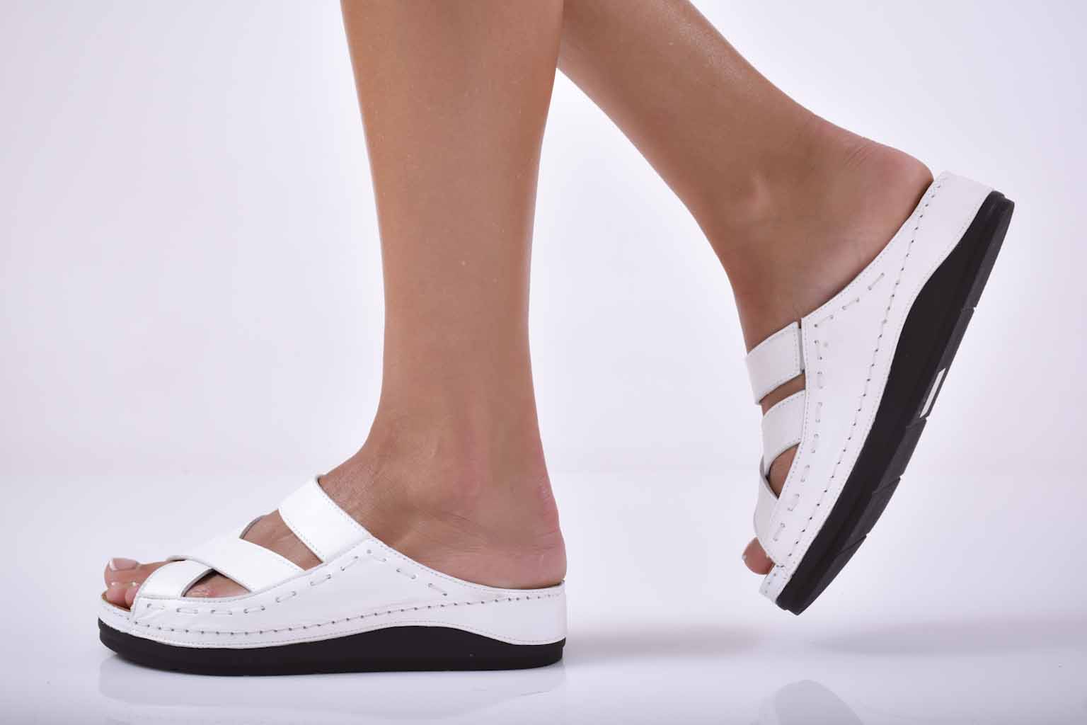 Дамски чехли естествена кожа бели EOBUVKIBG #501-1867