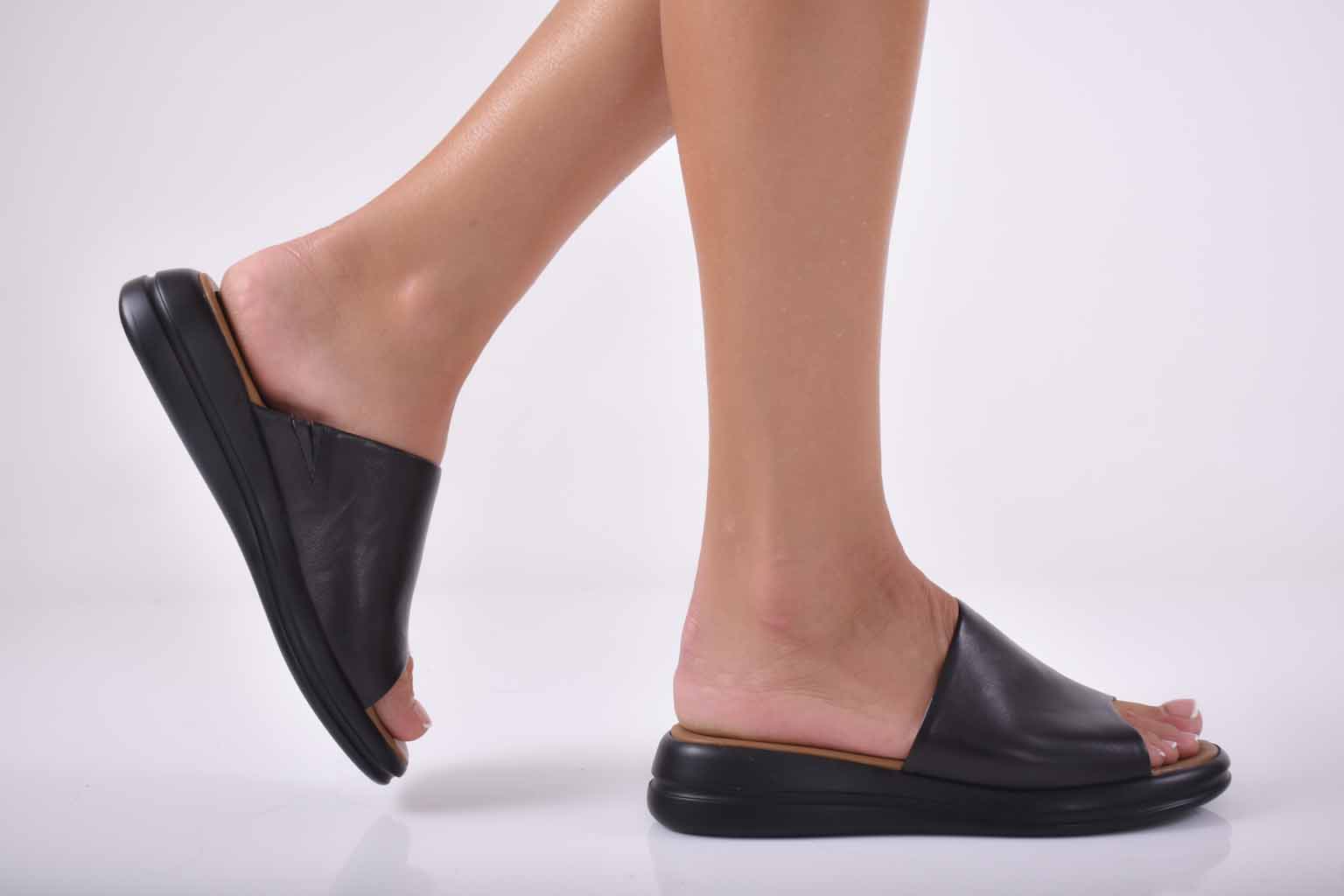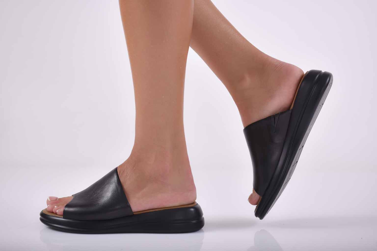 Дамски чехли естествена кожа черни EOBUVKIBG